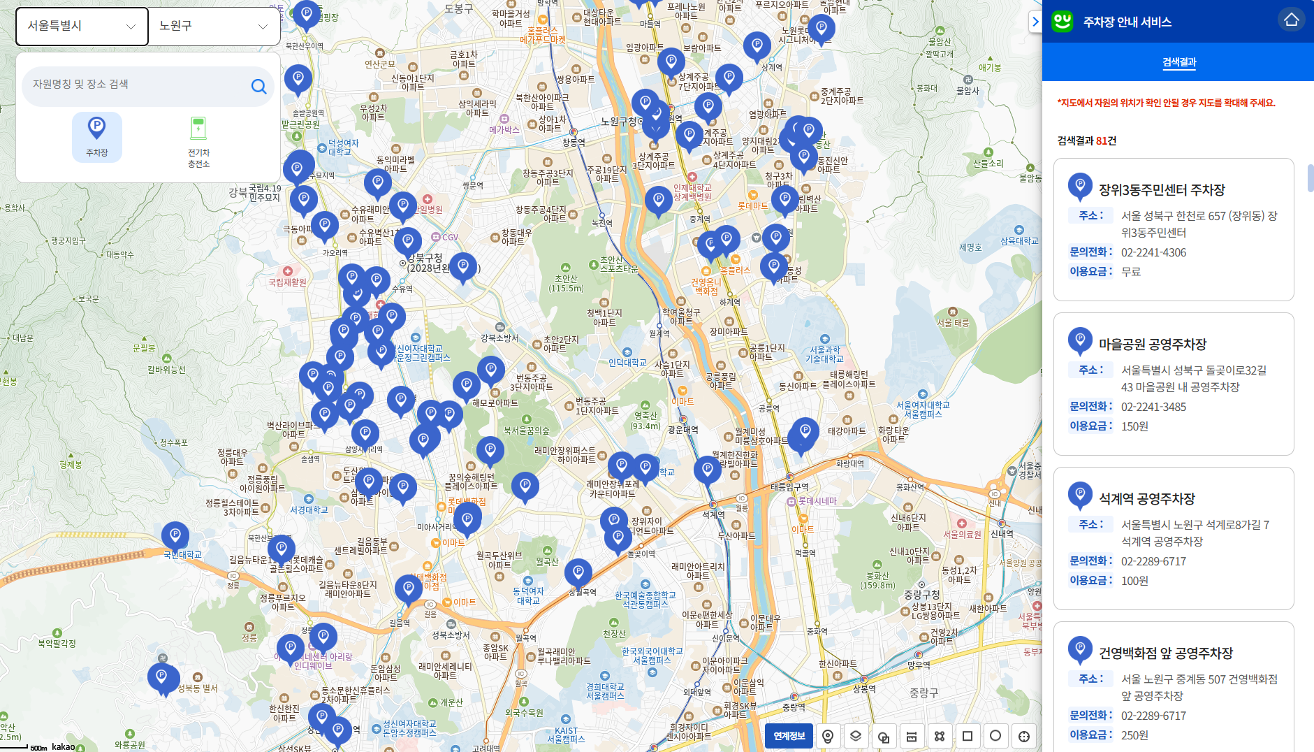 근처 주차장이 쫙 뜬다! 공영주차장을 찾기 좋다.
