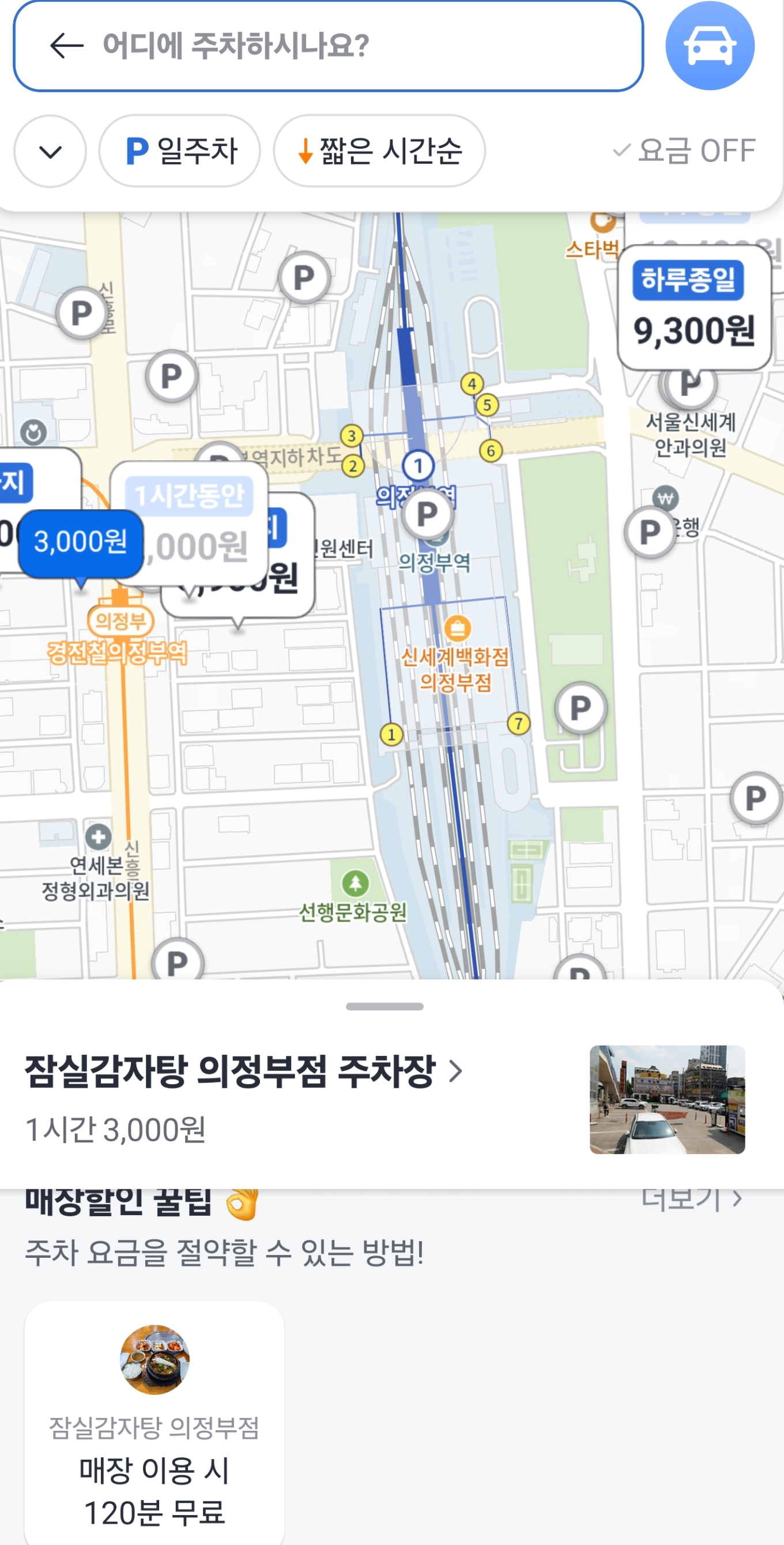 모두의 주차장 프로모션이나 카카오 T, 티맵으로 가격비교를 한 뒤 (특히 카카오맵의 할인정보는 꿀인 듯) 티맵으로 잔여대수를 확인하고 출발할 것 같다.