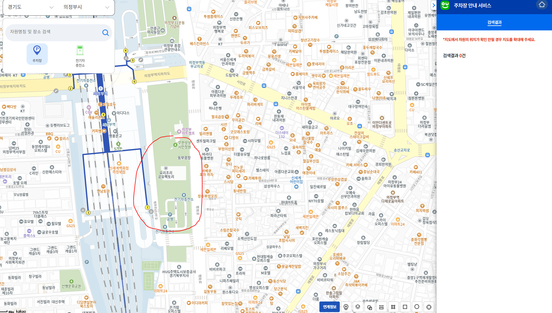 왜 공영주차장도 못 찾니.... 예시로는 의정부 공영주차장 못 찾는 모습
